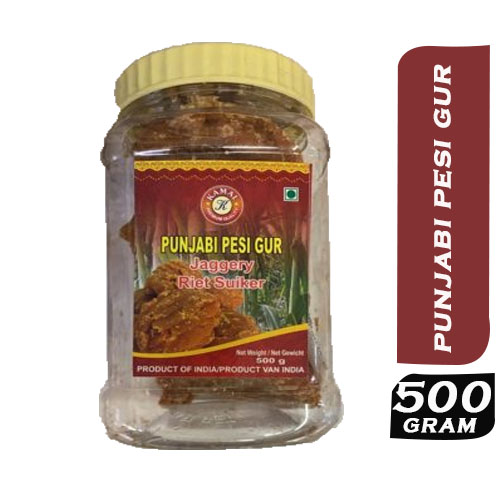 English : Kamal Punjabi Pesi Gur is a traditional Indian sweetener made from the sap of the date palm tree. It is a popular ingredient in many Indian desserts and is known for its rich, caramel-like flavor and smooth texture. This 500-gram pack is perfect for those who want to try this unique sweetener or for regular users who need a steady supply.